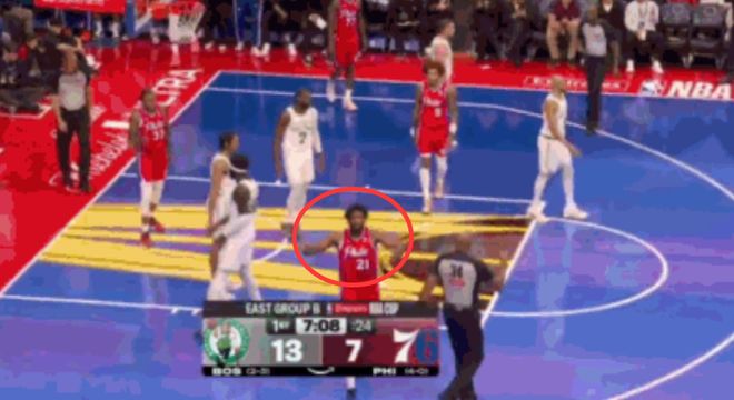 恩比德被罚5万美元!打成2+1后做不雅手势 大帝回应裁判也该罚